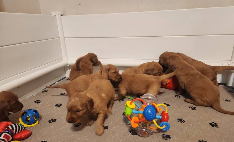 Cheyenne had 12 puppies on February 6th. 6 Males and 6 Females... currently we only have 2 Females and 3 Males available.